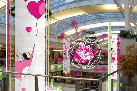 - Seasonal decoration of shopping centers. St. Valentin's day