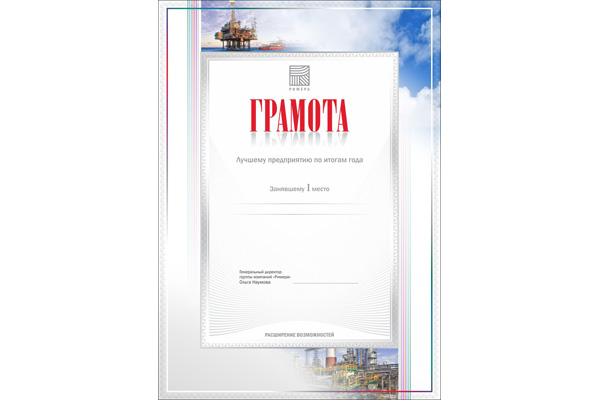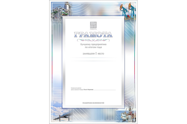 Рекламное агентство подготовило серию грамот, дипломов и сертификатов для нефтяной компании на различные мероприятия и акции.
