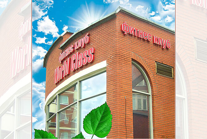 Показываем одну из выполненных нами работ – вывеска с объемными буквами на фасаде фитнес клуба «World Class».