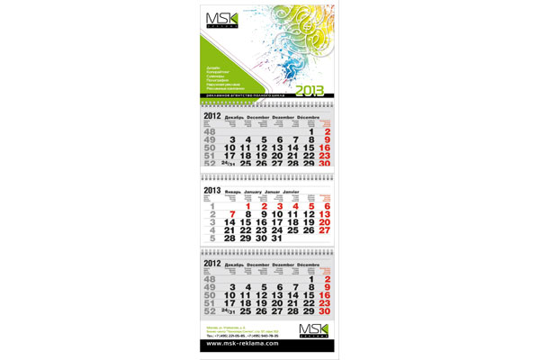 Рекламным агентством разработан новый фирменный квартальный календарь. Наша организация предоставит вам услуги по дизайну, печати и производству календарей. Имеем штатные дизайн-студию и отдел полиграфии и с удовольствием изготовим для вас фирменную полиграфию, включая квартальные календари. Корпоративная полиграфия незаменима для повседневного поддержания своего стиля и в тоже время служит подарком-сувениром заказчикам и партнерам.