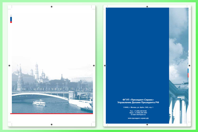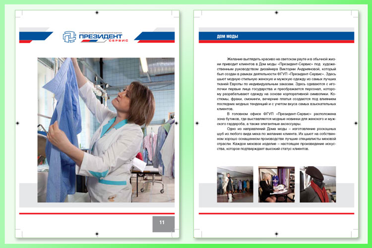 Нашим рекламным агентством полного цикла проведен дизайн и верстка буклета компании. Заказчик: ГУП «Президент-Сервис». Помимо дизайн-студии, проведена также работа копирайтером - создан слоган, обновлен текст – проведен рерайт. После согласования макета и оценки технологических проб изготовлен тираж продукции.
