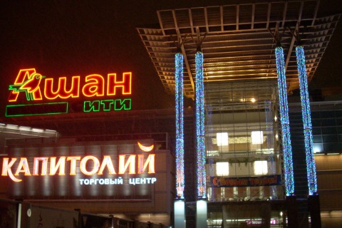 Праздничное оформление интерьера и прилегающей территории торгового центра «Капитолий» на проспекте Вернадского к Новому Году.